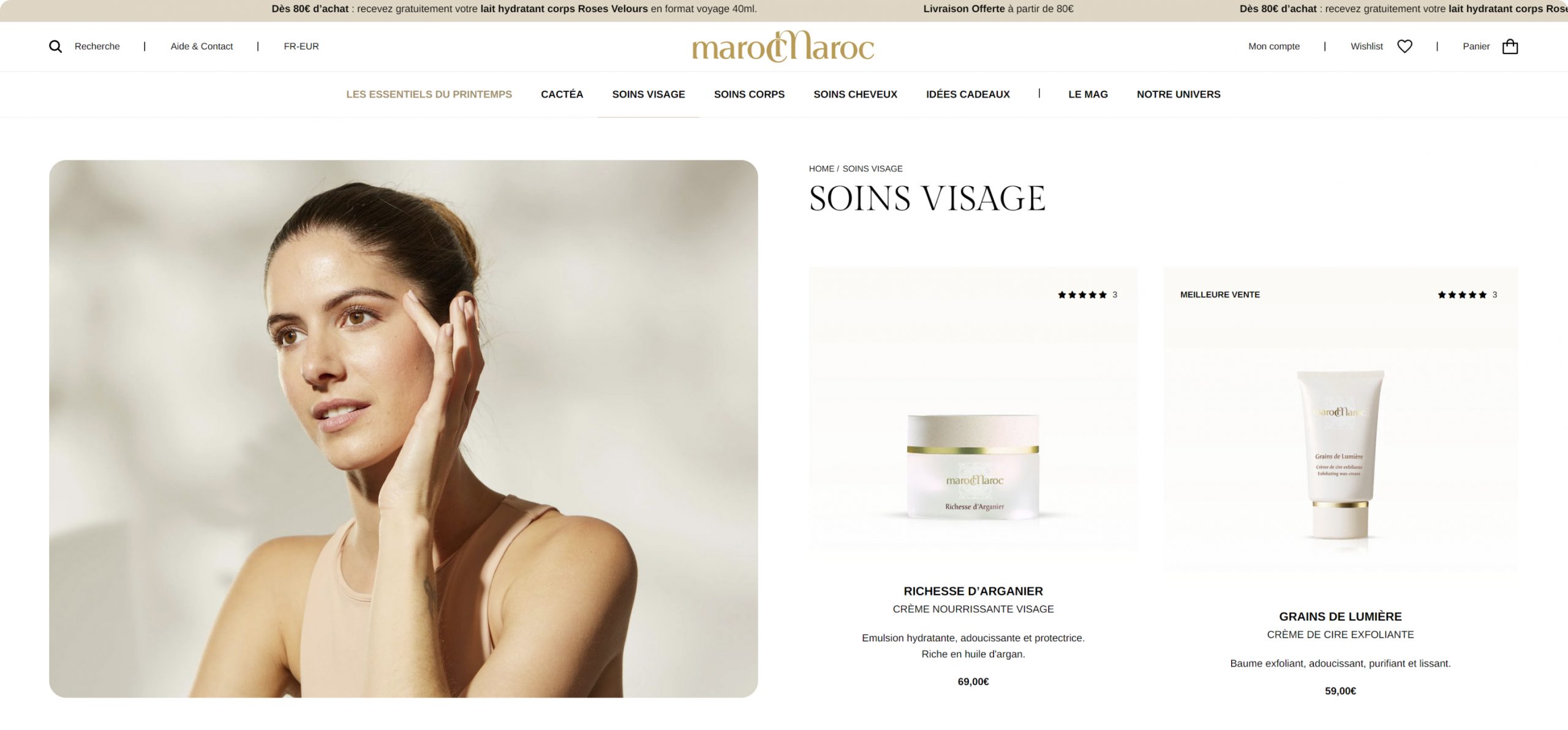 marocMaroc is a premium cosmetics brand that celebrates the treasures of Morocco with emblematic ingredients such as argan oil. Faced with conversion and visibility problems, it called on KNR, specialists in luxury and cosmetics e-commerce, to redesign the site and boost its performance.