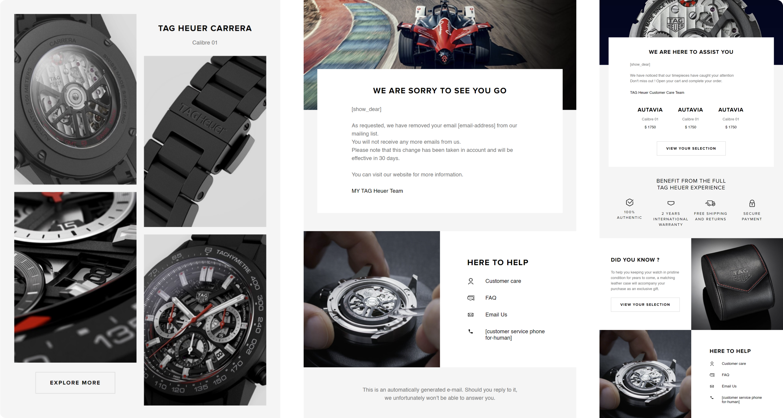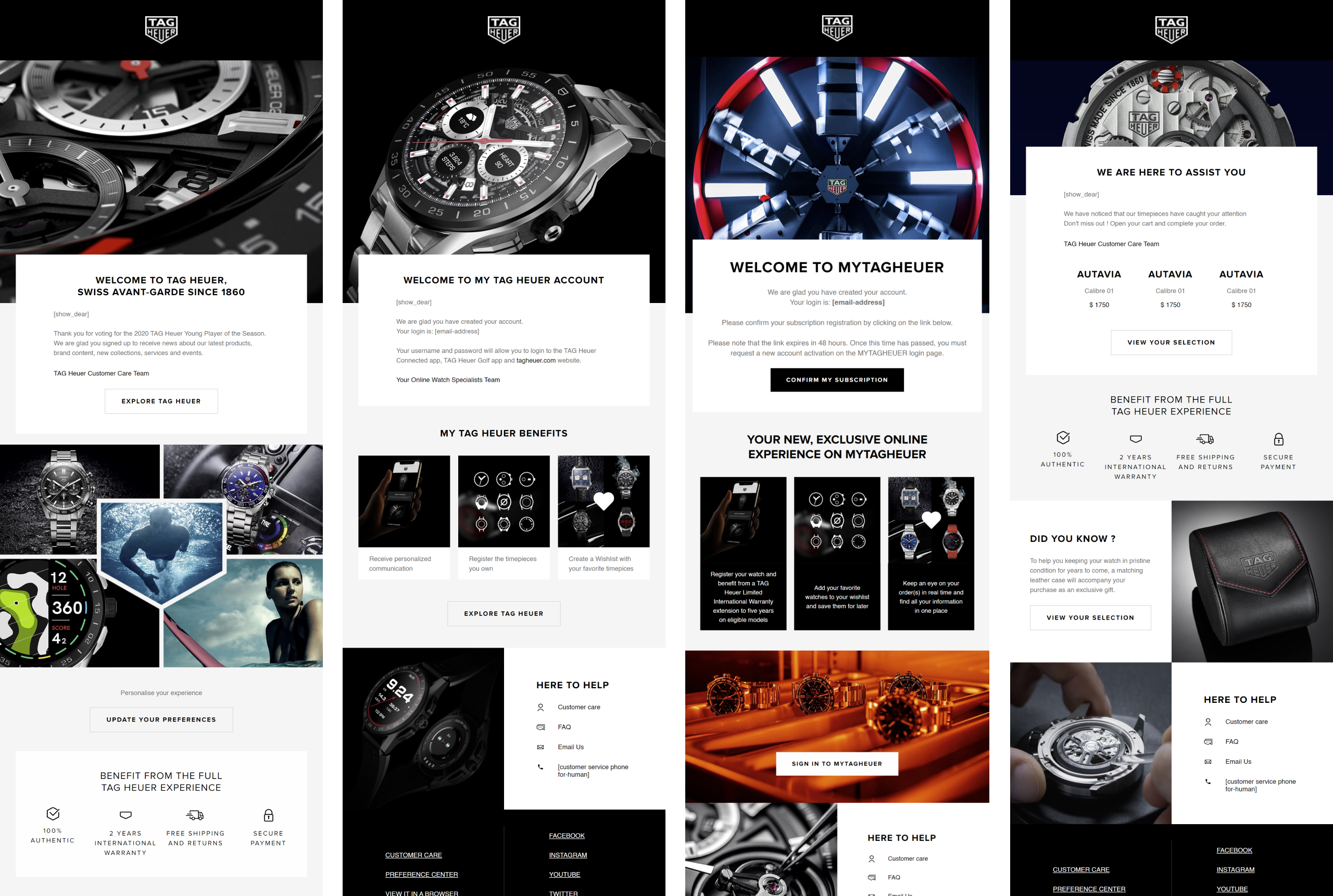 Adapting emails to effectively serve Tag Heuer's international clientele, managing communication in 11 different languages and taking into account local peculiarities, including currency and language variations, to ensure a consistent and personalized message for each market.