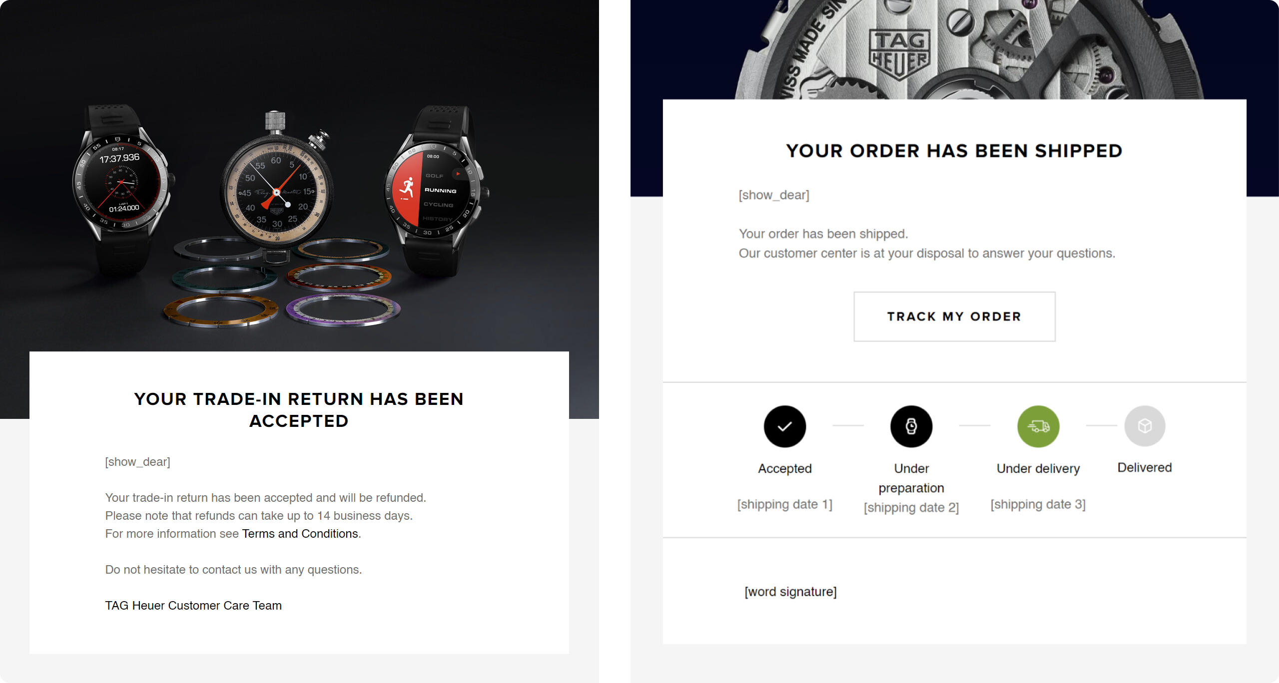 Transactional Email Redesign for Tag Heuer on Salesforce Marketing Cloud