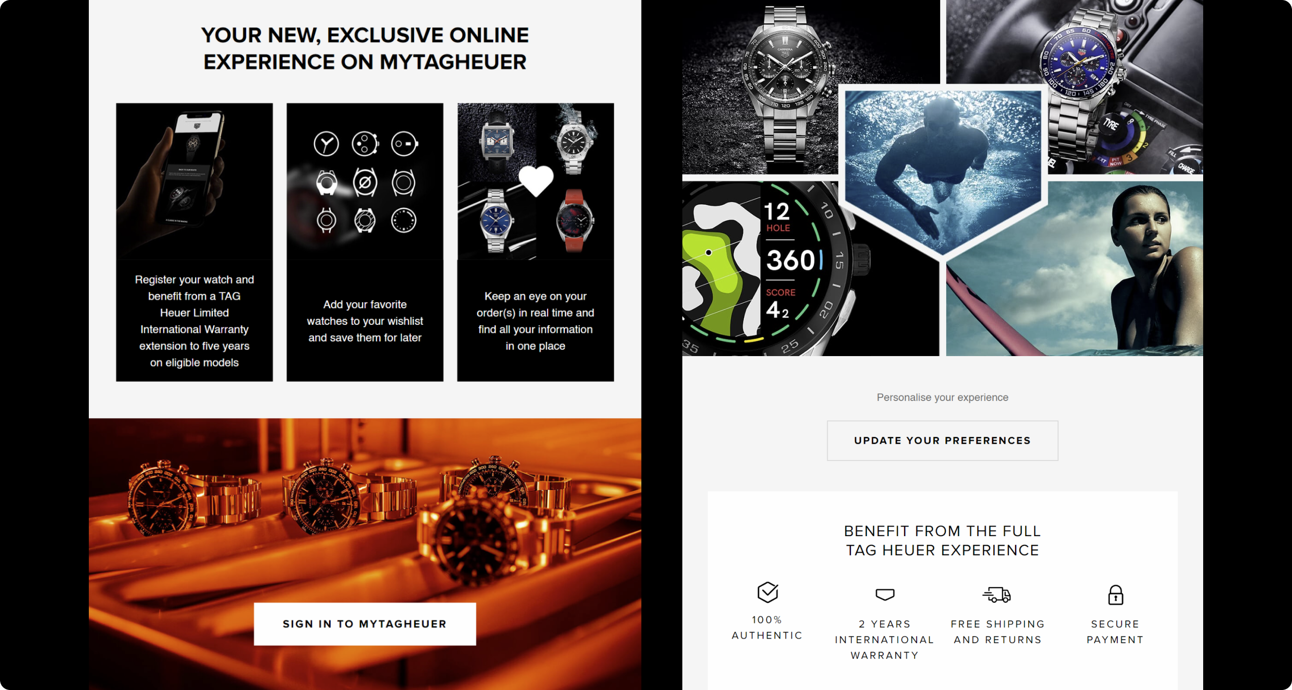 Tag Heuer recently undertook a major graphic redesign of its e-commerce site to better reflect its high-end brand image and commitment to excellence. This visual upgrade, however, revealed a mismatch with their existing transactional emails, which had become visually outdated and technically obsolete. The templates were no longer in phase with the site's new aesthetic, lacking responsiveness and immersion, which compromised the user experience and the coherence of the brand's communication.